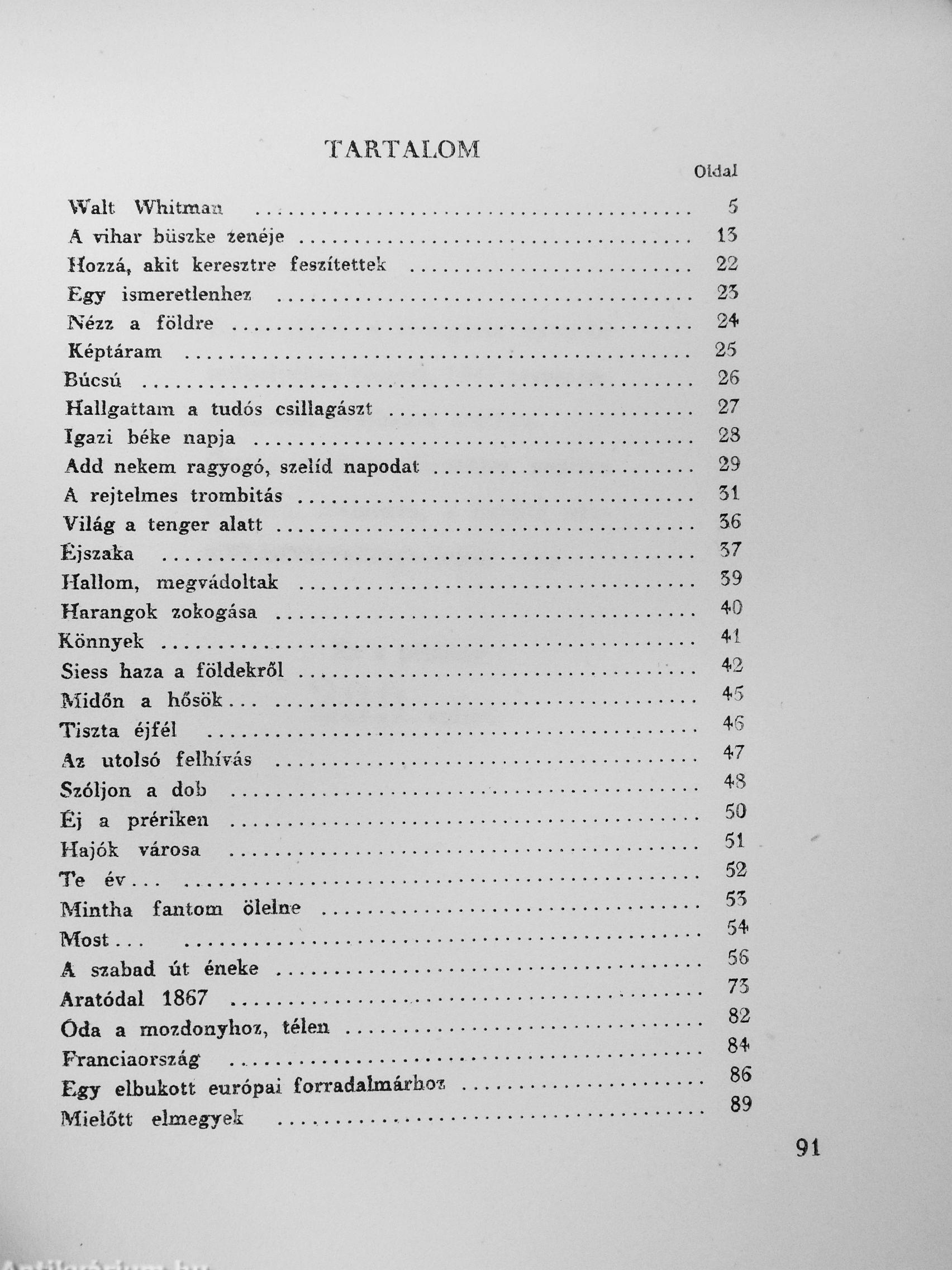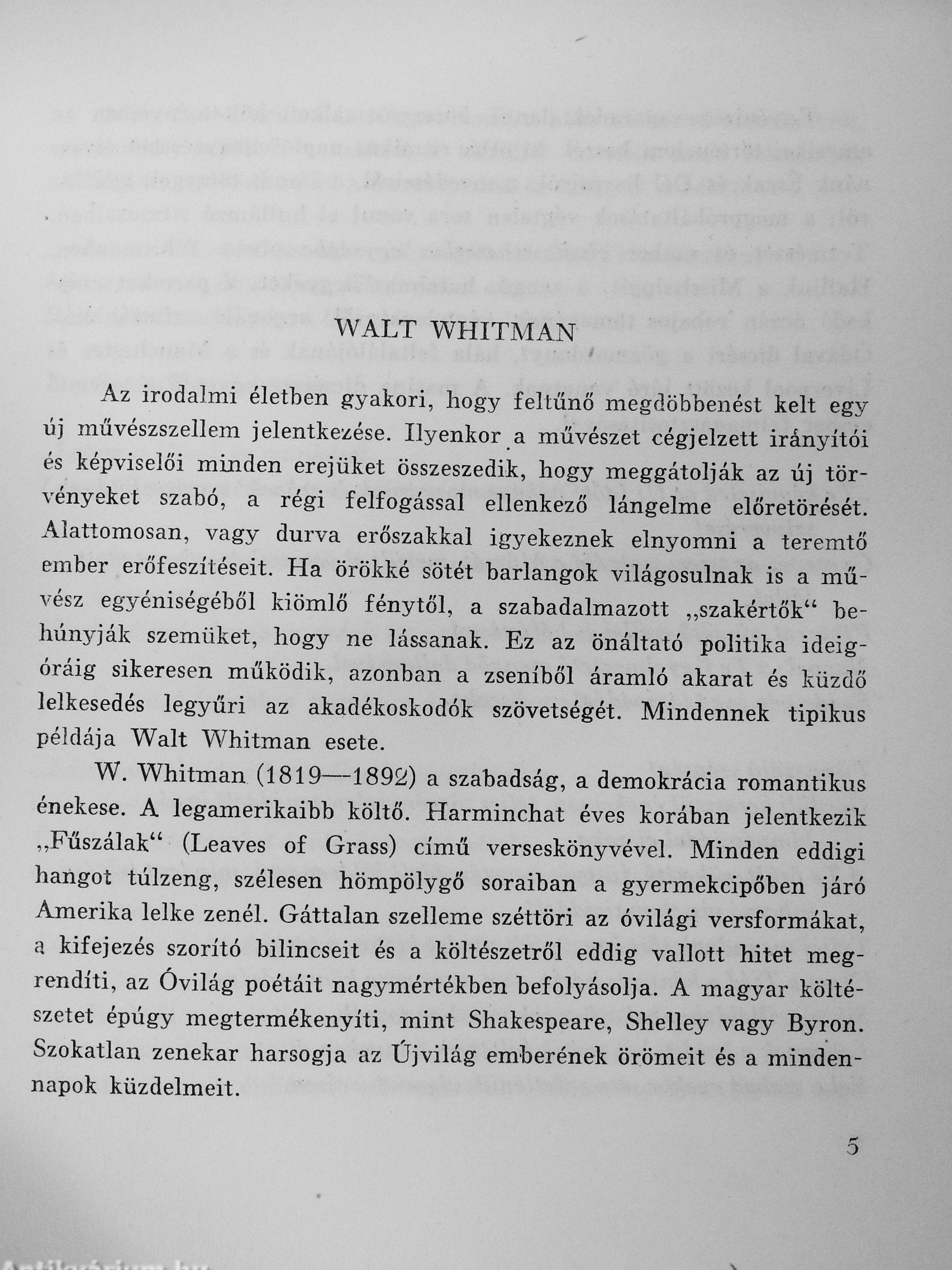 Walt Whitman műveinek az Antikvarium.hu-n kapható vagy előjegyezhető listáját itt tekintheti meg: Walt Whitman könyvek, művek