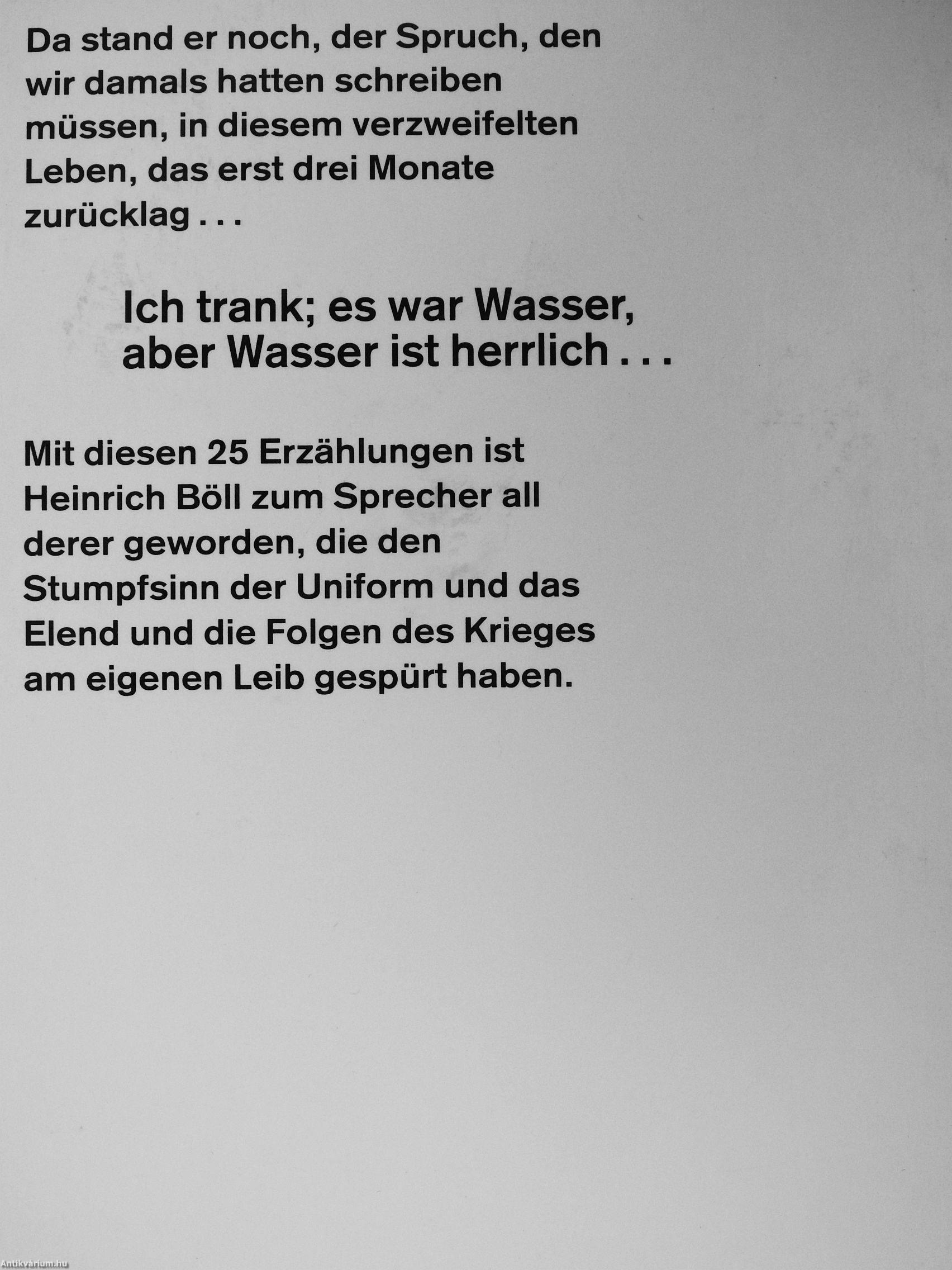 Mit diesen 25 Erzählungen ist Heinrich Boll zum Sprecher all derer geworden, die den Stumpfsinn der Uniform und das Elend und die Folgen des Krieges am eigenen Leib gespürt haben.