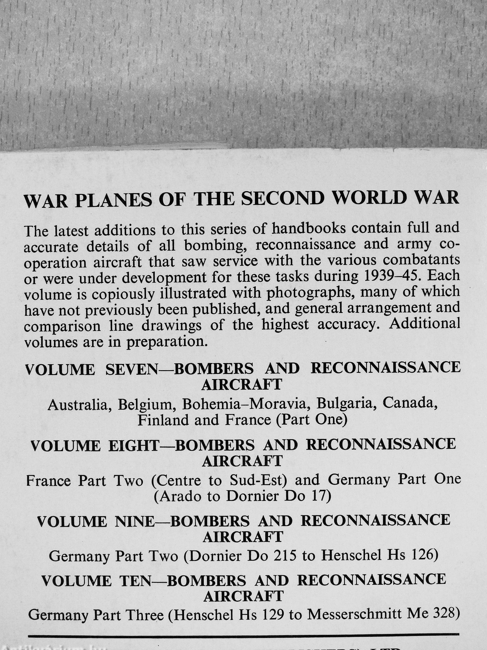 The latest additions to this series of handbooks contain full and accurate details of all bombing, reconnaissance and army cooperation aircraft that saw service with the various combatants or were under development for these tasks during 1939-45. Each volume is copiously illustrated with photographs, many of which have not previously been published, and general arrangement and comparison line drawings of the highest accuracy. Additional volumes are in preparation.