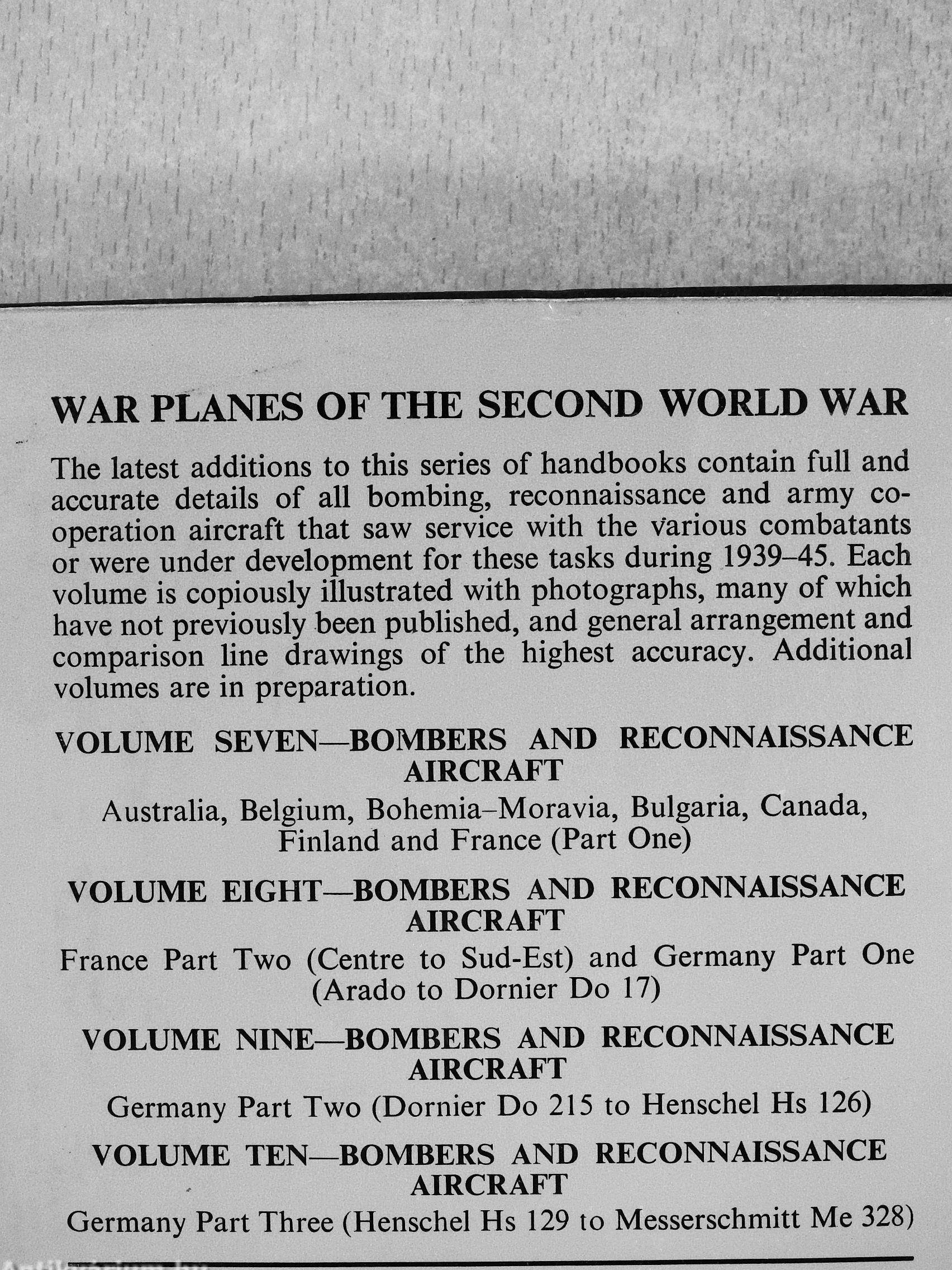 The latest additions to this series of handbooks contain full and accurate details of all bombing, reconnaissance and army cooperation aircraft that saw service with the various combatants or were under development for these tasks during 1939-45. Each volume is copiously illustrated with photographs, many of which have not previously been published, and general arrangement and comparison line drawings of the highest accuracy. Additional volumes are in preparation.