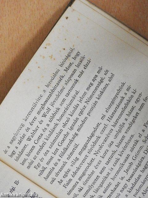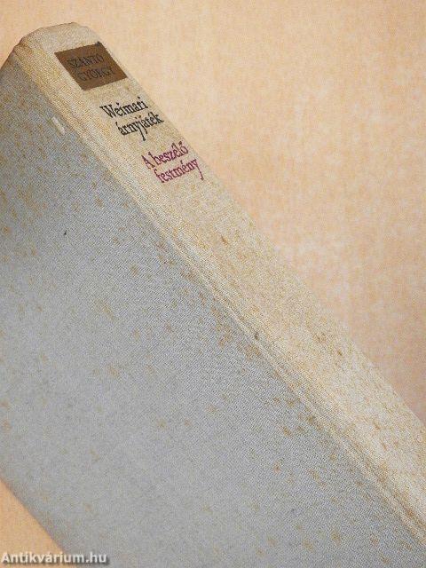A Weimari árnyjátékban két boldogtalan ember tesz vallomást: August Goethe, aki az aggastyán költőfejedelem árnyékában nem élheti saját életét, nem bizonyíthatja a világnak tehetségét, s akinek az apa iránti tisztelet megtiltja a lázadást. Mindössze annyit tehet ez a keserű, feleségétől lenézett, gyermekeinek idegen ember, hogy szerény bolygóként keringjen a "Nap" - Goethe - körében. A másik naplóban Ottilie von Pogwisch, August felesége vall - az az asszony, aki az "unalmas" August mellett, a weimari "copfosok" között gyötrelmesnek érzi sorsát, egy hosszú életen át konokul - és hiába - kergeti a boldogságot. Szántó György könnyed kézzel keveri ki színeit, amelyekből egy nagyon érdekes, tarka világ bontakozik ki, s megelevenedik a XIX. század négy évtizedének művészvilága, a Goethe-ház lakóitól és látogatóitól kezdve Grillparzer bécsi köréig, a Róma kávéházaiban összeverődő angol, svéd vagy izlandi festőkig, szobrászokig.