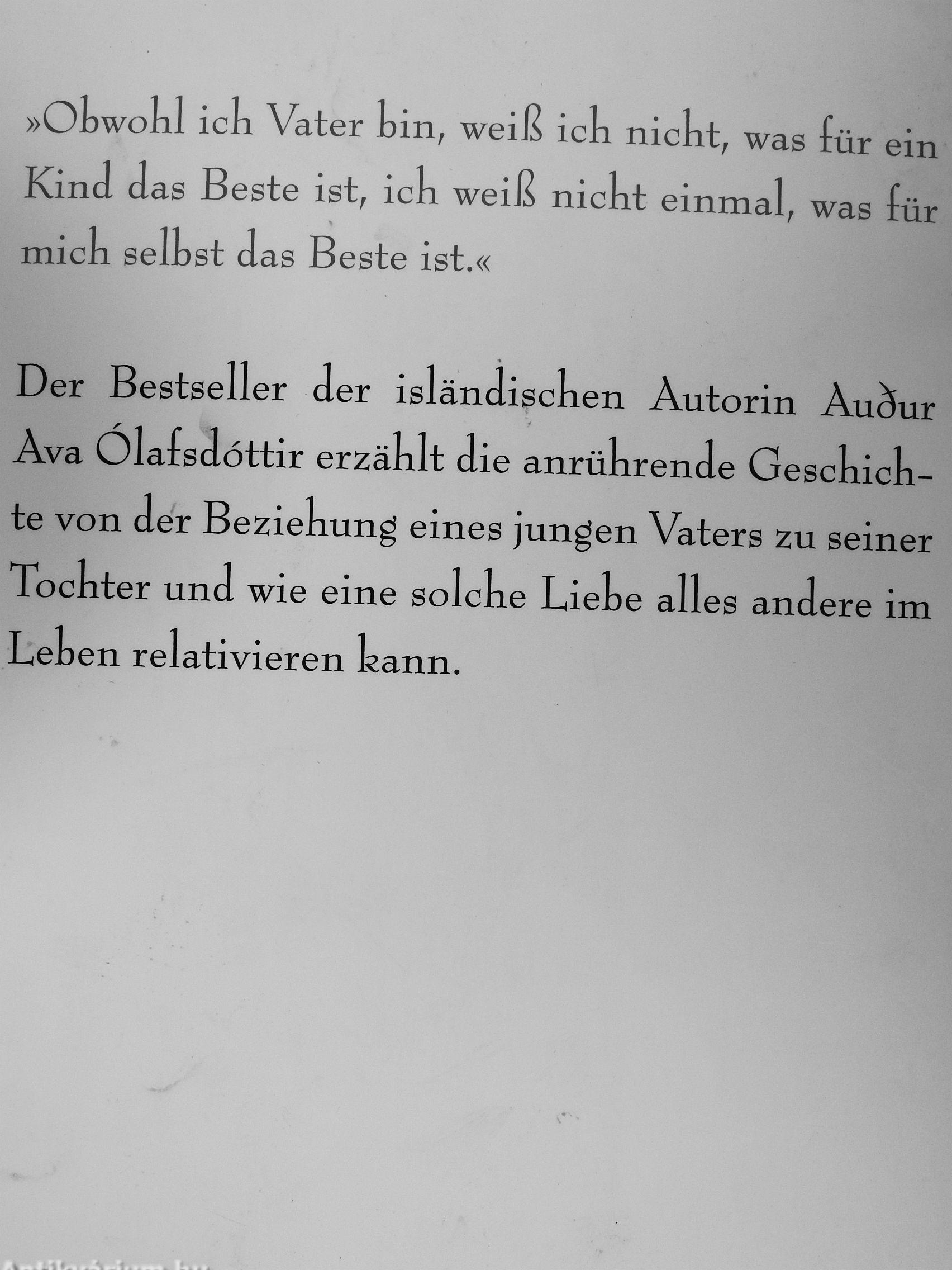 Der Bestseller der isländischen Autorin Auäur Ava Ölafsd öttir erzählt die anrührende Geschichte von der Beziehung eines jungen Vaters zu seiner Tochter und wie eine solche Liehe alles andere im Lehen relativieren kann.