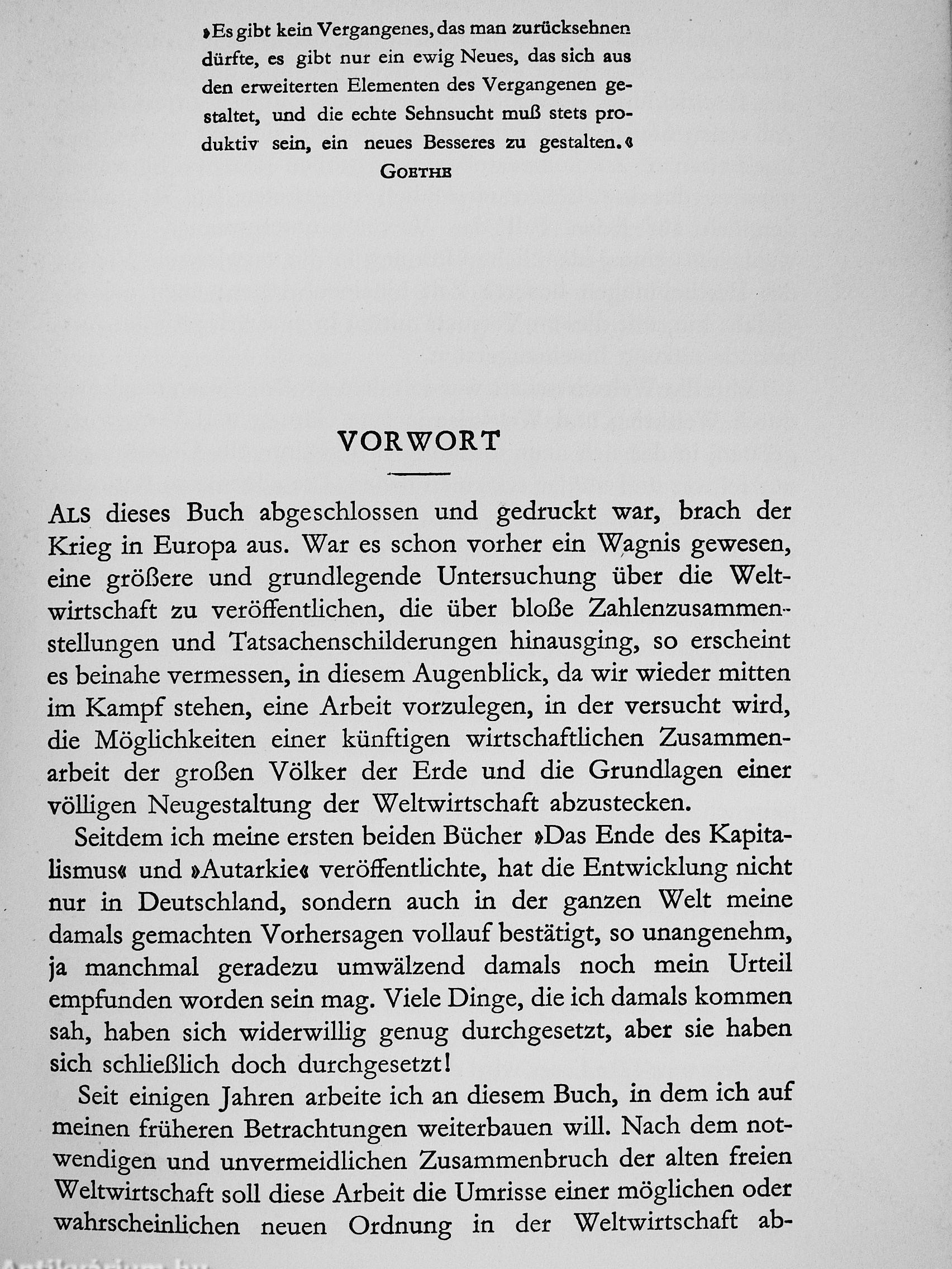 Wir alle haben in den letzten Jahrzehnten den Zu-sammenbrudi der kapitalistisdien Weltwirtsdiaft erlebt. Wie wird sidi nun die künftige Weltwirtsdiaft gestalten? Wie wird der Kampf um die neue Verteilung der Erde verlaufen? Das sind die Fragen, die sidi heute jeder vorlegt, der das weltpolitLsdie und wieltwirtsdiaftlidie Gesdiehen mit offenen Augen beobaditet. Ferdinand Fried, der durdi seine Aufsätze in der Zeit-sdu-ift »Die Tat« weithin bekannt geworden ist, gibt in dem vorliegenden Werk die Antwort auf diese und zahl-reidie andere Fragen der Wirtsdiaftsdeutung. Die starke Industrialisierung der Vorkriegszeit und der damals herrsdiende Freihandel erzeugten wohl eine starke Steigerung der Welthandelsumsätze, führten aber nur zu einer imperialistisdien Weltpolitik, deren Spannungen sidi im Weltkrieg enduden. Dadurdi und durdi die ansdiließenden Wirtsdiaftskrisen wurde die alte liberale Weltwirtsdiaft zersdilagen. Unter Abkehr von der internationalen kapitalistisdien Weltwirtsdiaft bilden sidi heute durdi starke staatlidie Führung neue Wirtsdiaftsräume, die eine völlige Neuordnung der Wirtsdiaft herbeiführen und die wirtsdiaftlidie Gestaltung den staatlidien Notwendigkeiten unterordnen.
