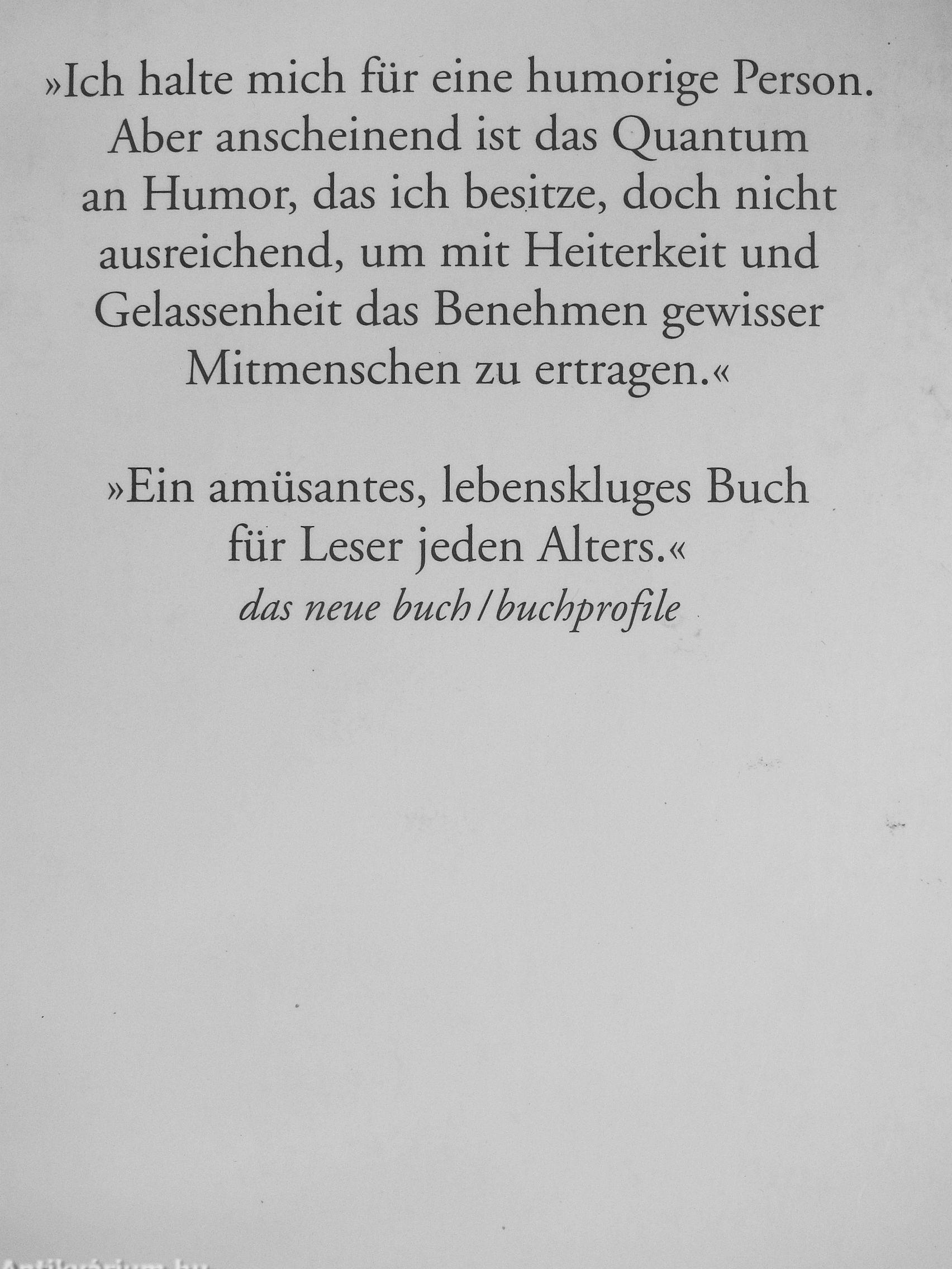 Aber anscheinend ist das Quantum an Humor, das ich besitze, doch nicht ausreichend, um mit Heiterkeit und Gelassenheit das Benehmen gewisser Mitmenschen zu ertragen.«
