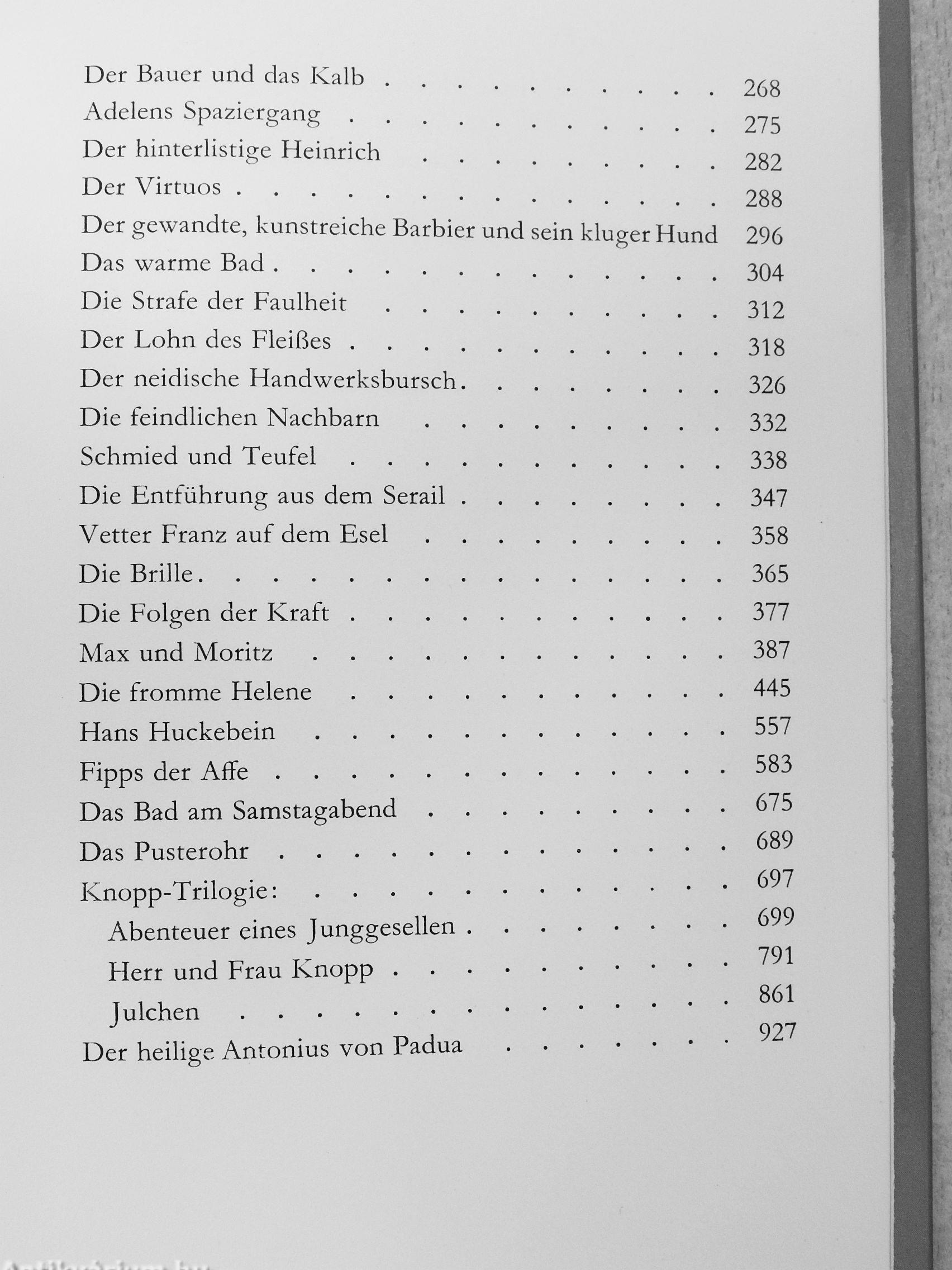 den »Weisen aus Wiedensahl« (15. April 1832 - 9. Januar 1908), bekannt und berühmt gemacht haben und ihn zum Klassiker des deutschen Humors werden ließen, sind in dieser handlichen und besonders preiswerten Sonderausgabe vereint: die kürzeren aus seinen Anfangsjahren, die zunächst in Zeitschriften wie etwa den »Fliegenden Blättern« oder den »Münchner Bilderbogen« erschienen und seinen Ruf begründeten, ebenso wie die ausführlichen um die berühmten Figuren Max und Moritz, Tobias Knopp, den Affen Fips, die fromme Helene oder den Bruder