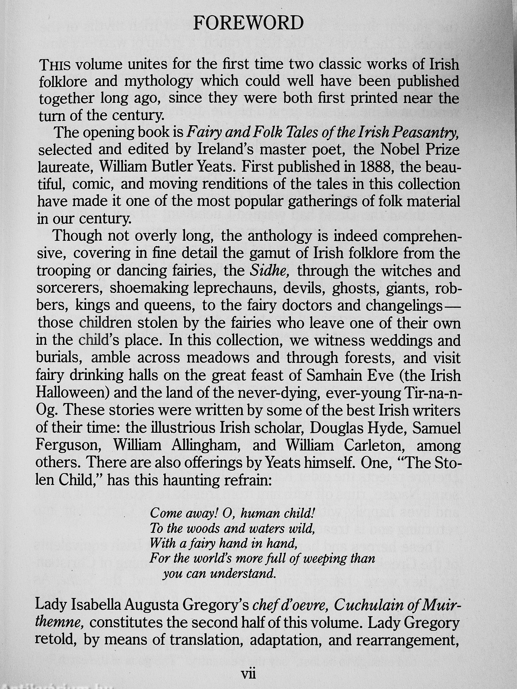 So wrote William Butler Yeats, in praise of Lady Gregorys Cuchulain of Muirthemne, the second book in this volume But it applies equally well to his own Folk and Fairy Tales of the Irish Peasantry, the opening work. Here are two milestones of classic myth and folklore by the giants of the Irish Renaissance: Yeats's original groundbreaking anthology of tales of the magic creatures of Ireland, and Lady Gregory's beautiful and poetic retelling of the great epic myth of Ireland's national hero, Cuchulain.