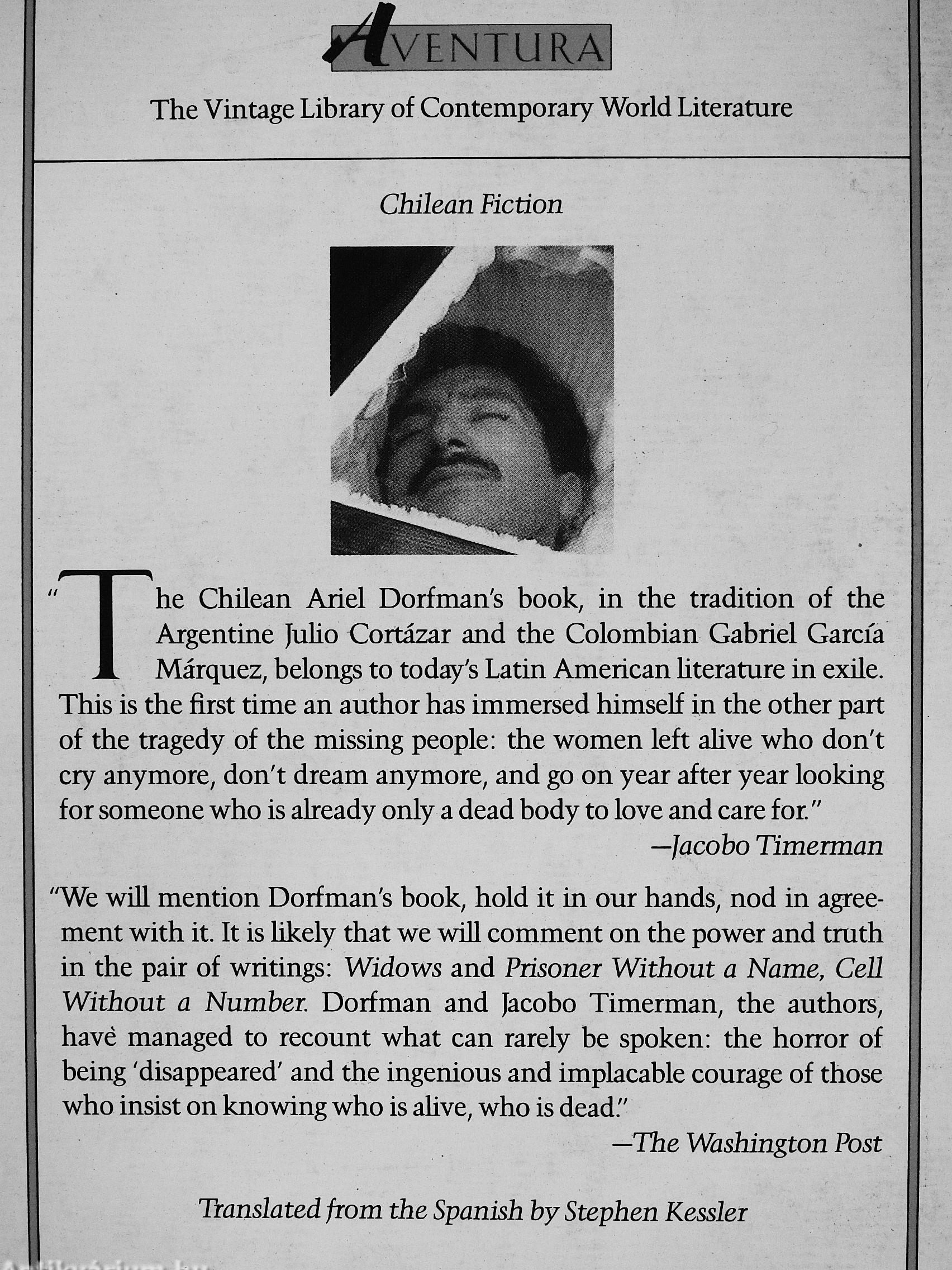 "We will mention Dorfman's book, hold it in our hands, nod in agreement with it. It is likely that we will comment on the power and truth in the pair of writings: Widows and Prisoner Without a Name, Cell Without a Number. Dorfman and Jacobo Timerman, the authors, havé managed to recount what can rarely he spoken: the horror of being 'disappeared' and the ingenious and implacable courage of those who insist on knowing who is... Tovább