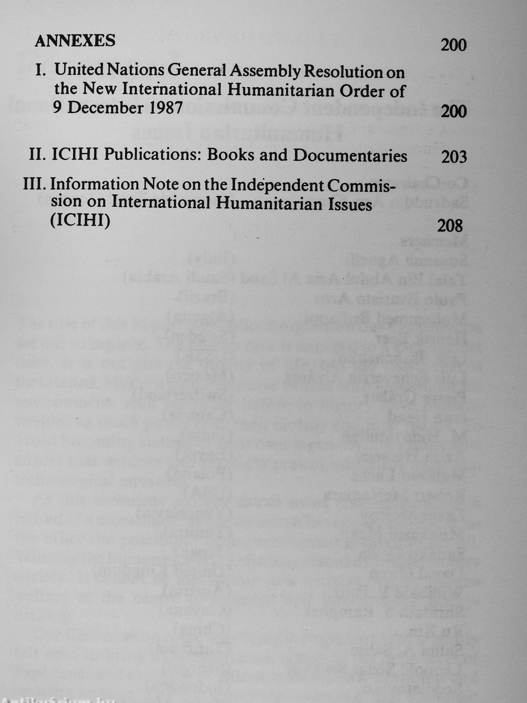 THE REPORT OF THE INDEPENDENT COMMISSION ON INTERNATIONAL HUMANITARIAN ISSUES