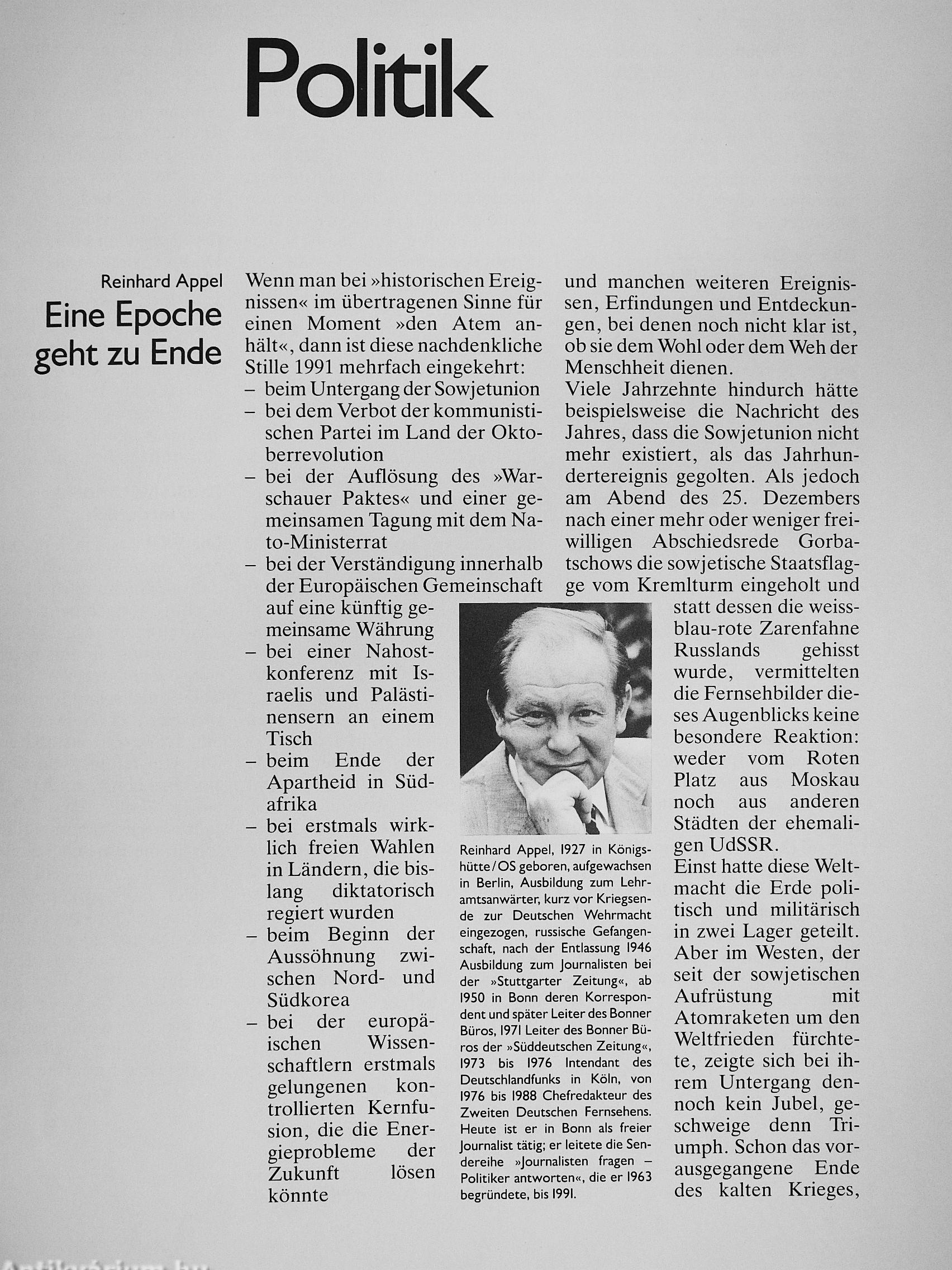Übersichtlich gestaltete Kapitel, informative Texte, sachkundige Kommentare und einefesselnde Bildchronikmit mehrals 500 Bildern der weitbesten Fotografen machen das JAHRBUCH 1991 zu einem unentbehrlichen, zuverlässigen Zeitzeugen von hohem dokumentarischem Wert Vissza