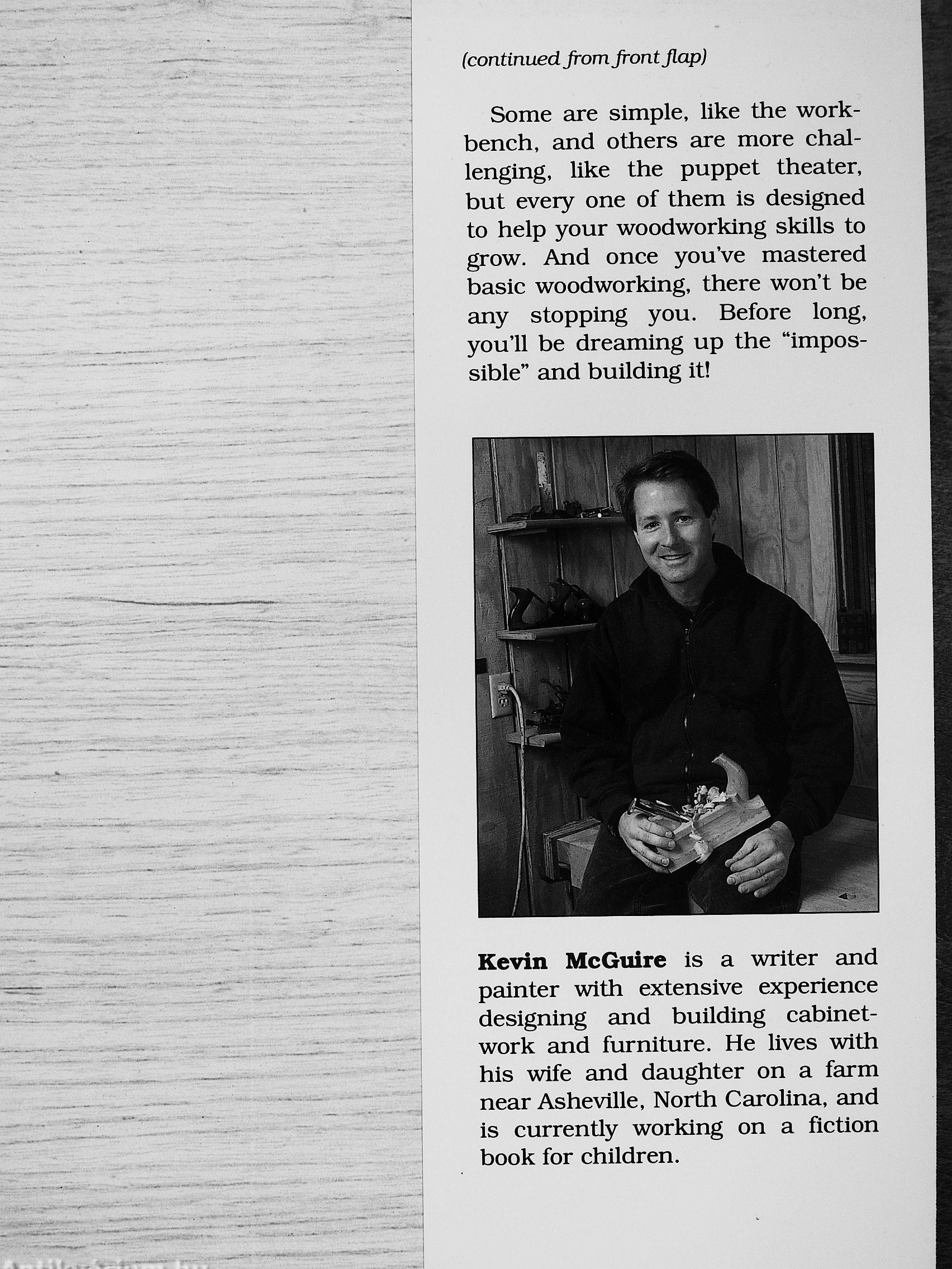 Kevin McGuire is a writer and painter with extensive experience designing and building cabinetwork and furniture. He lives with his wife and daughter on a farm near Asheville, North Carolina, and is currently working on a Action book for children.