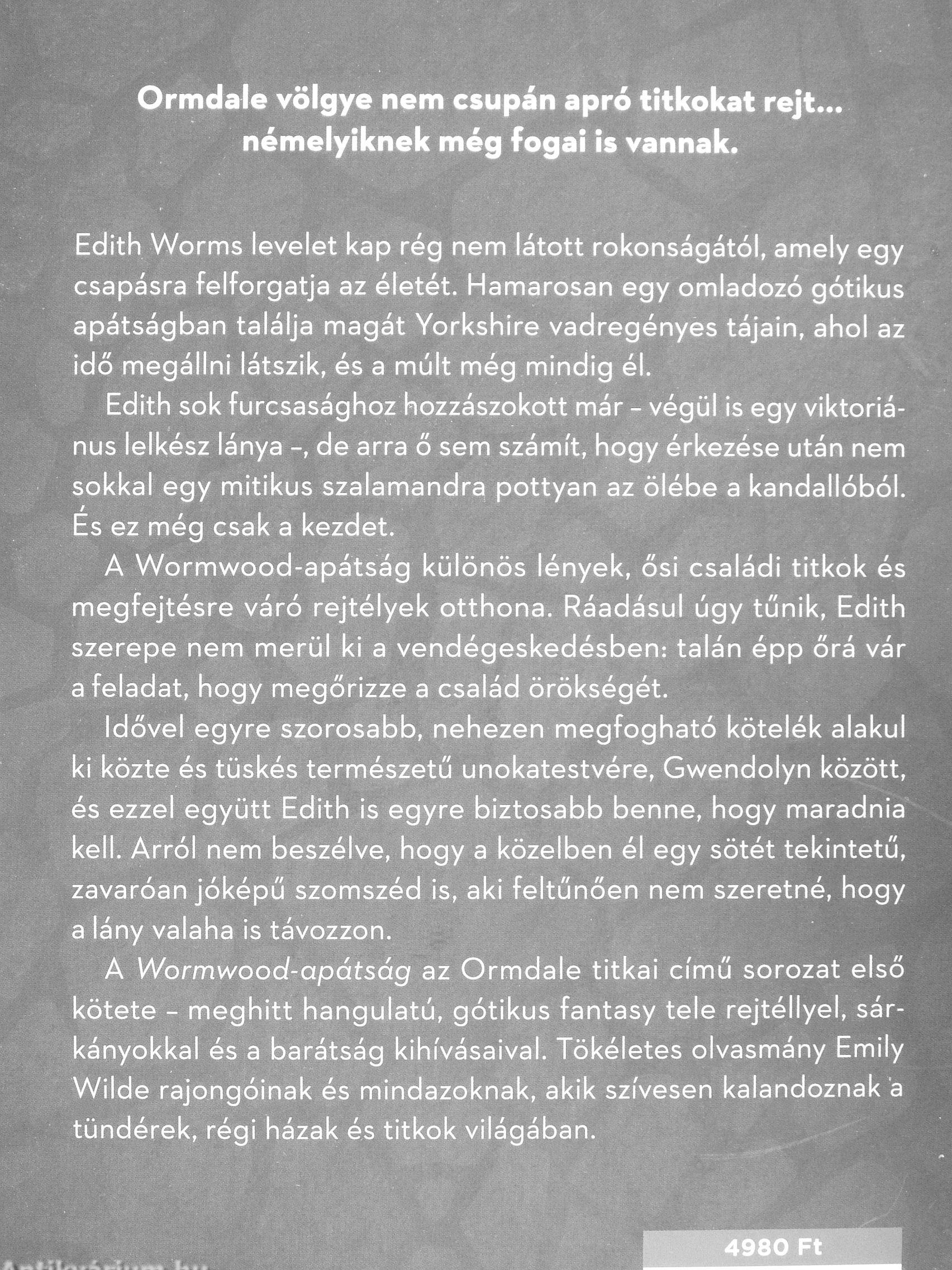 A Wormwood-apátság az Ormdale titkai című sorozat első kötete - meghitt hangulatú, gótikus fantasy tele rejtéllyel, sárkányokkal és a barátság kihívásaival. Tökéletes olvasmány Emily Wilde rajongóinak és mindazoknak, akik szívesen kalandoznak a tündérek, régi házak és titkok világában.