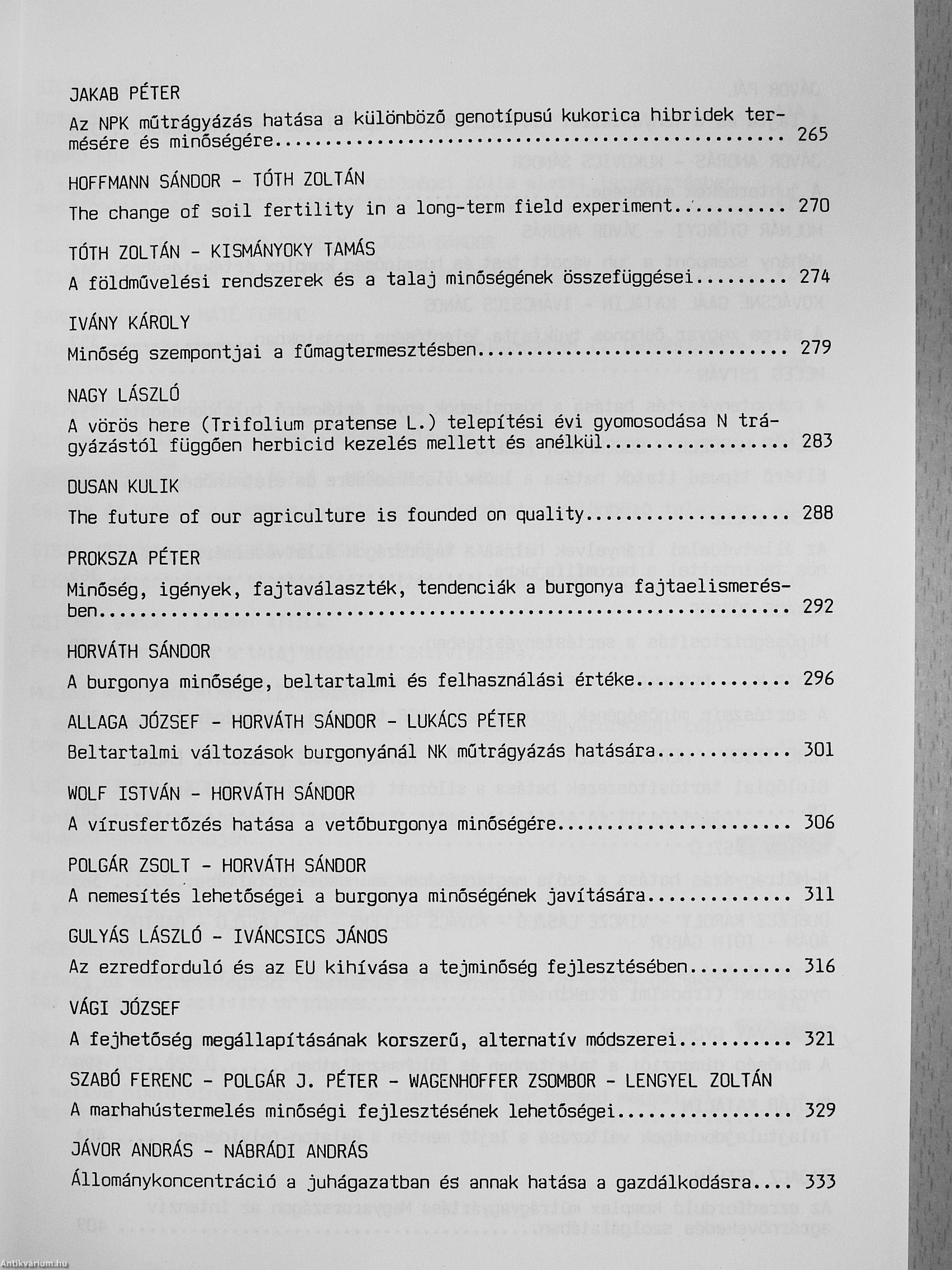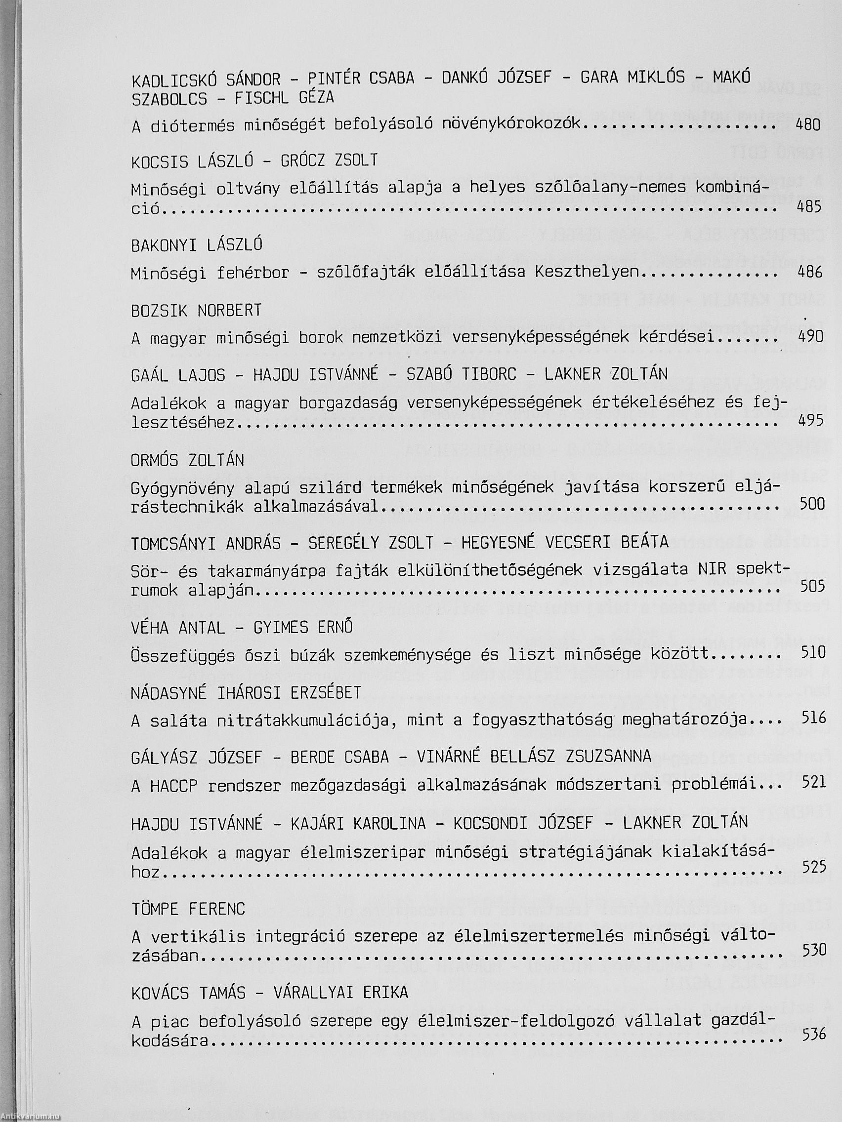 Agrárjövőnk alapja a minőség/Előadások/1999. szeptember 23-24. Keszthely