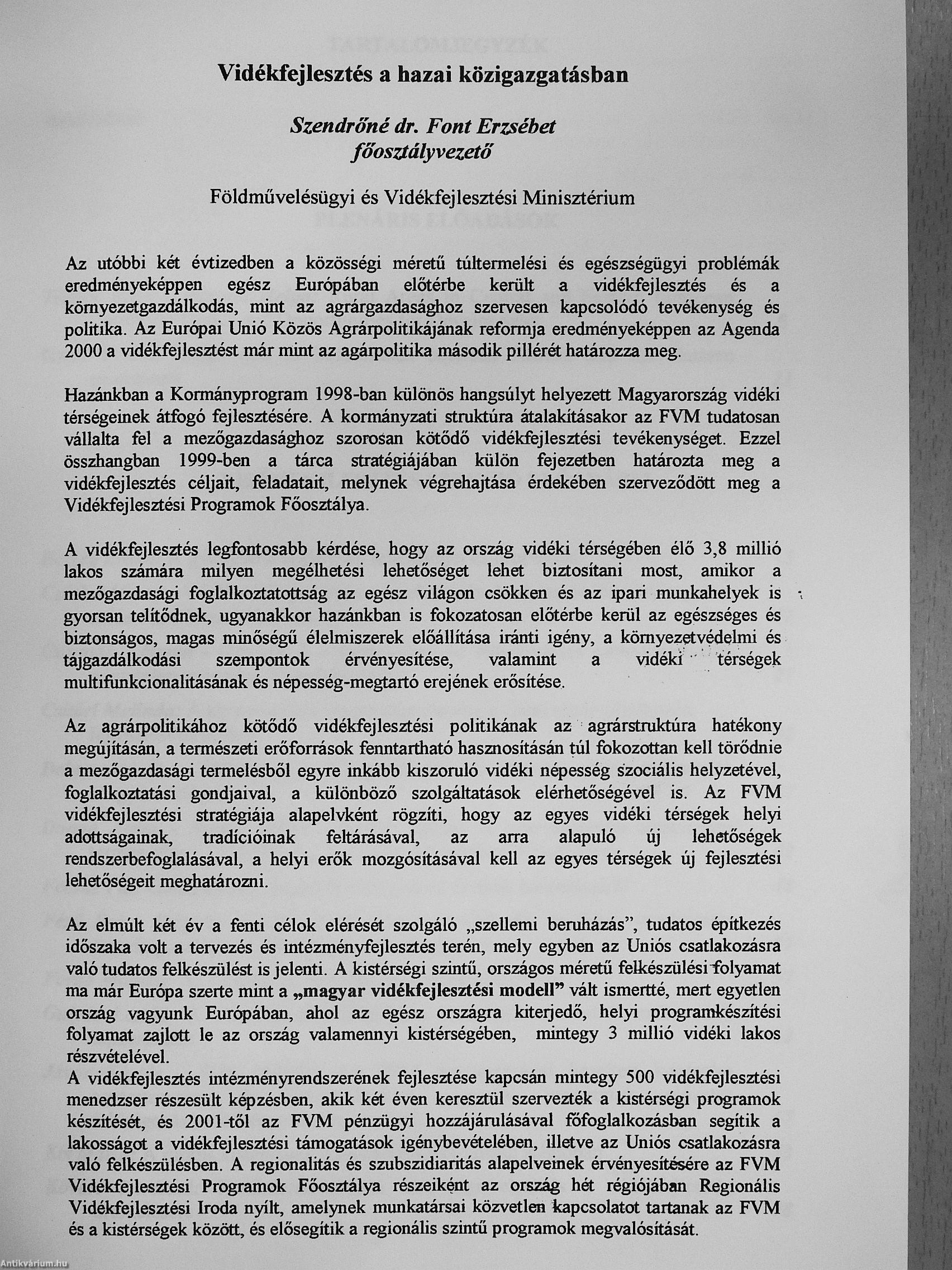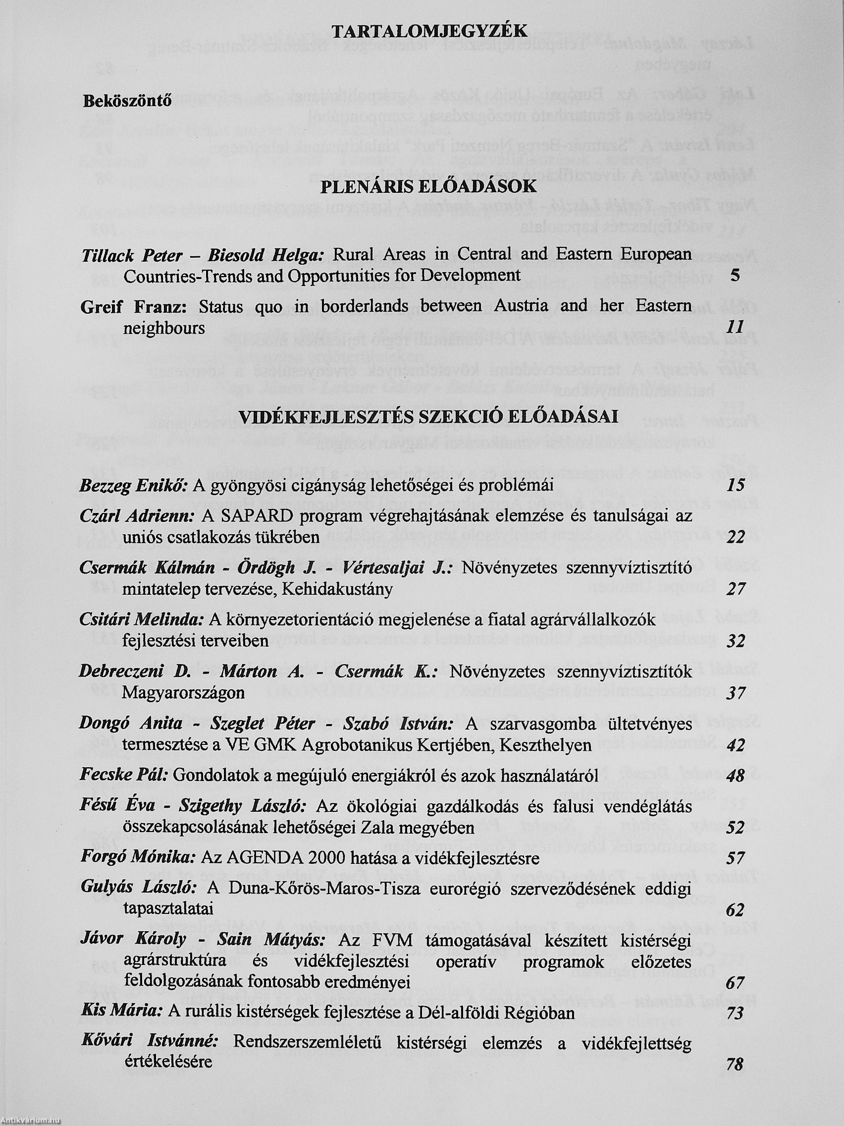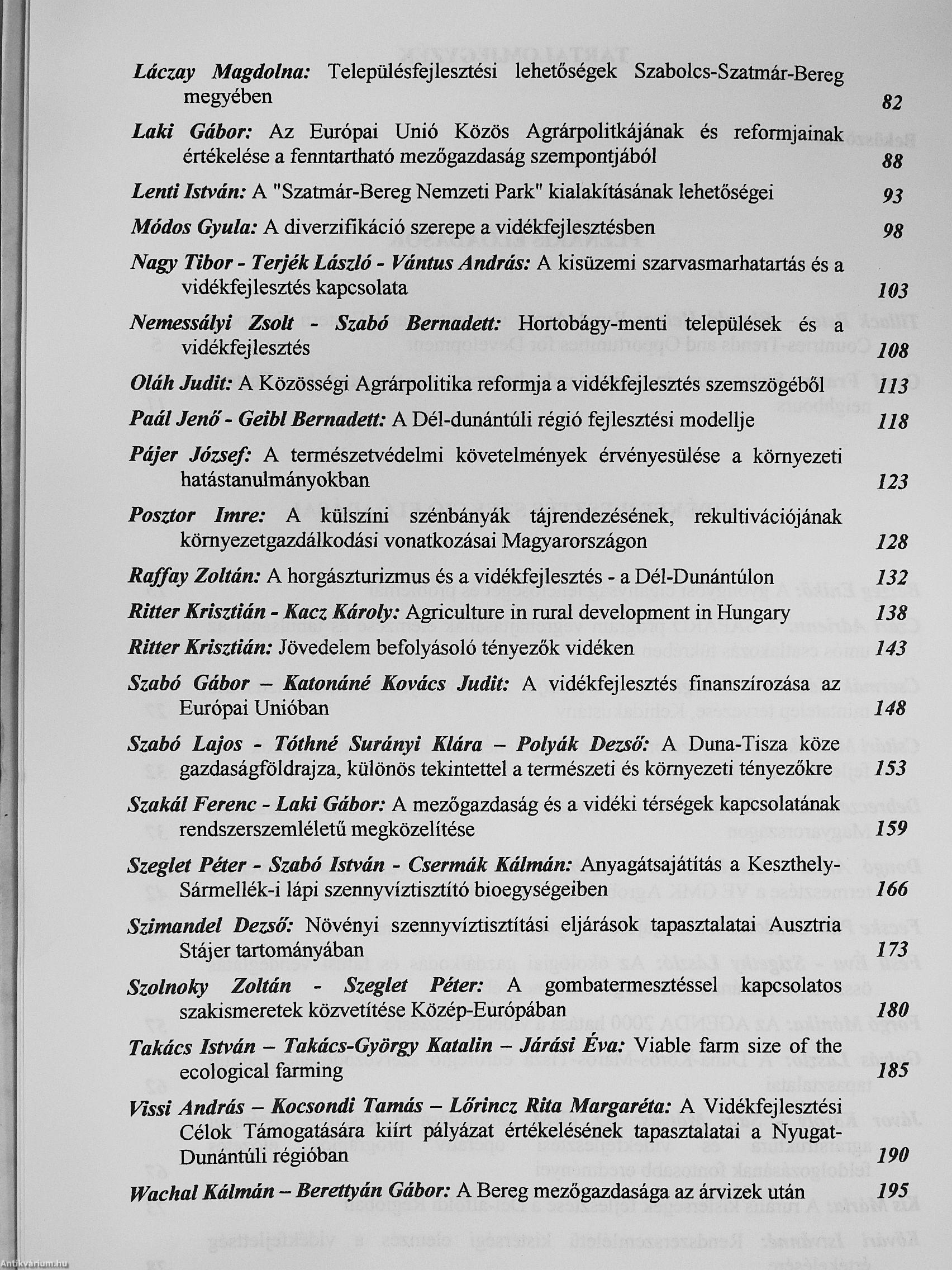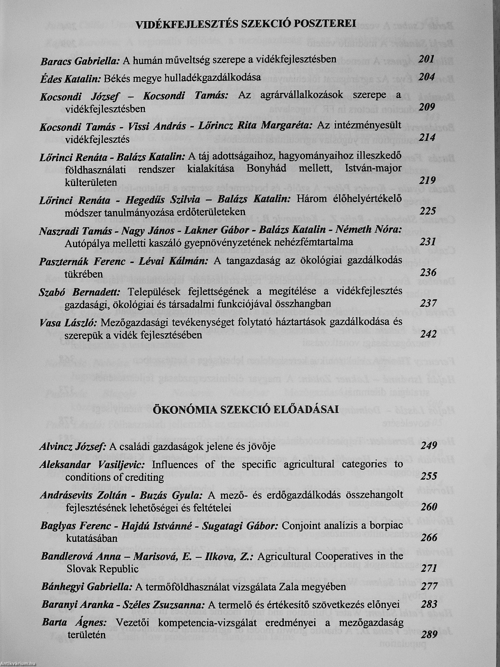 | Kiadó: | Veszprémi Egyetem Georgikon Mezőgazdaságtudományi Kar-Földművelésügyi és Vidékfejlesztési Minisztérium Vidékfejlesztési Programok Főosztálya |