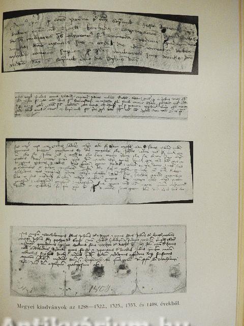 II. Alispáni és szolgabírói pecsétek zárt és nyilt alakú megyei kiadványokon. - a) 1476. Hg. Batthyány-család levéltára, Fam. div. 18. - b) 1444. Hg. Festetics-család levéltára, Zalad. 121c. - c) 1515. Országos Levéltár, DI. 22.586. - d) 1520. Hg. Batthyány-család levéltára, Himfy. 752. 514