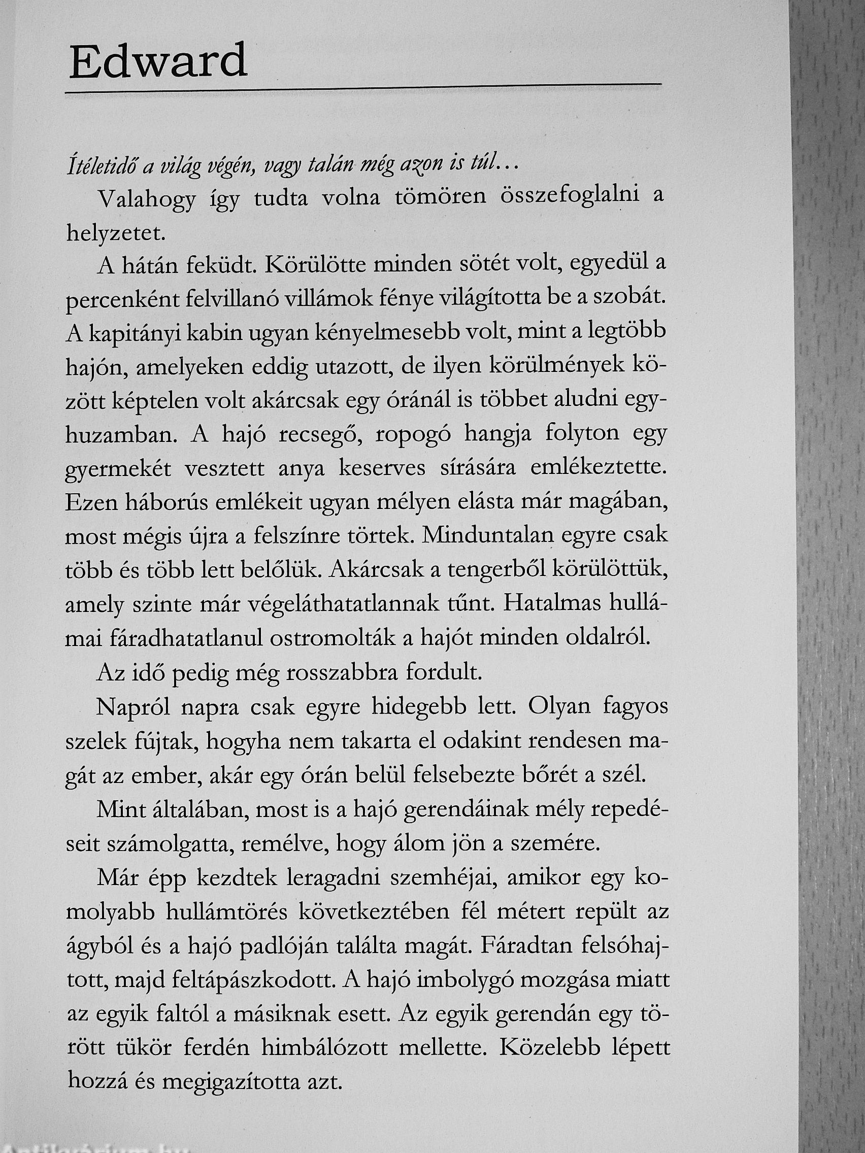 Ser Edward tapasztalt hajós. Az Esenworthi királyság talán eddigi legmerészebb expedícióján igyekszik kivívni a főtiszteletes áldását, aki egyben nem más, mint szerelmének édesapja, a királyság talán legbefolyásosabb embere. Ám a könyörtelen viharokkal teli úton olyan dologra bukkan, ami alapjaiban rengetheti meg nem csak mindannyiuk hitét, de a világukról alkotott képet is. Eközben szerelme, Emma, a messzi tengerektől távol igyekszik kivágni magát a szövevényes ármánykodások pókhálójából, amibe az új király, Erick, csak egyre mélyebbre rántja.