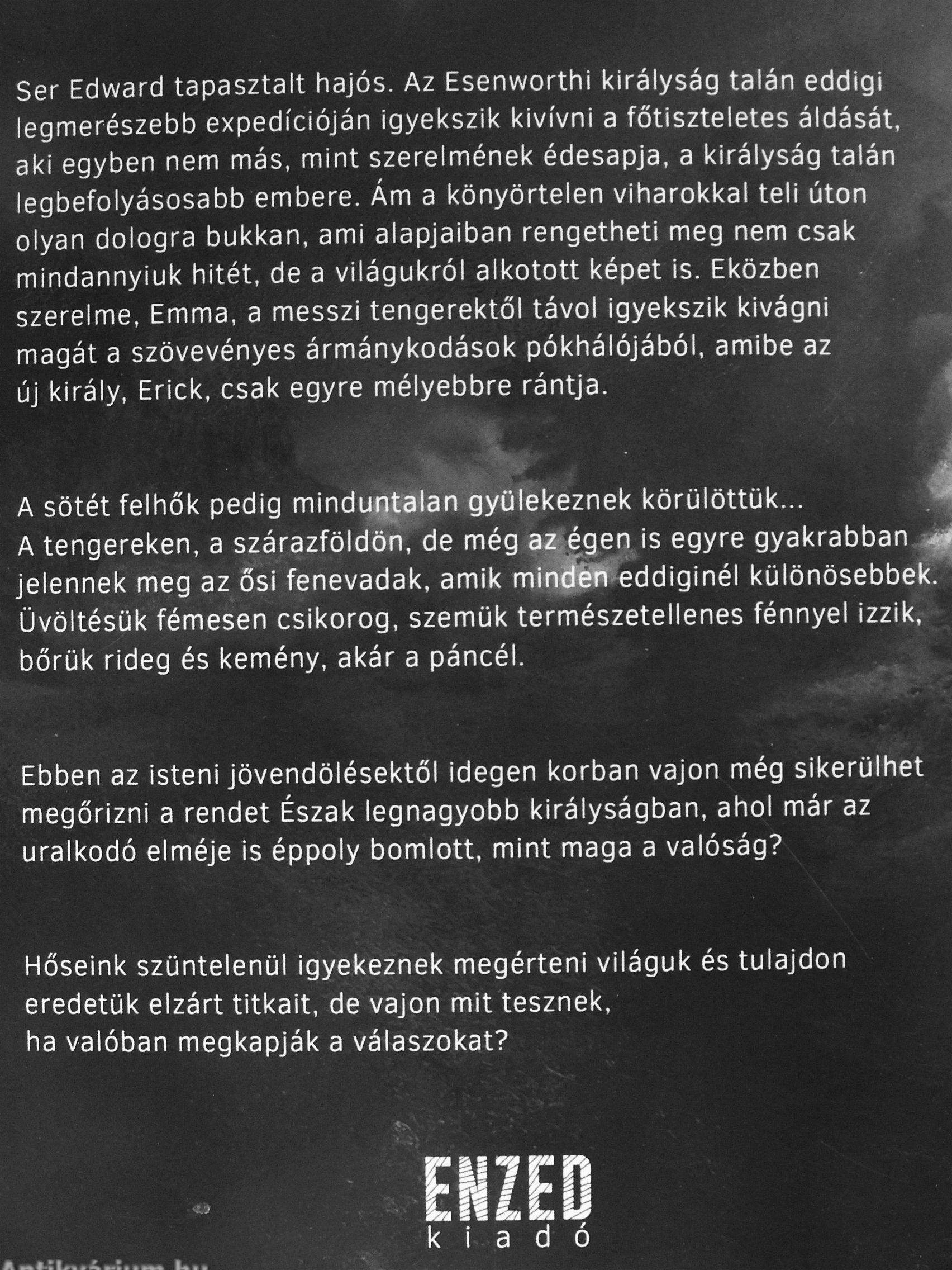 A sötét felhők pedig minduntalan gyülekeznek körülöttük A tengereken, a szárazföldön, de még az égen is egyre gyakrabban jelennek meg az ősi fenevadak, amik minden eddiginél különösebbek. Üvöltésük fémesen csikorog, szemük természetellenes fénnyel izzik, bőrük rideg és kemény, akár a páncél.