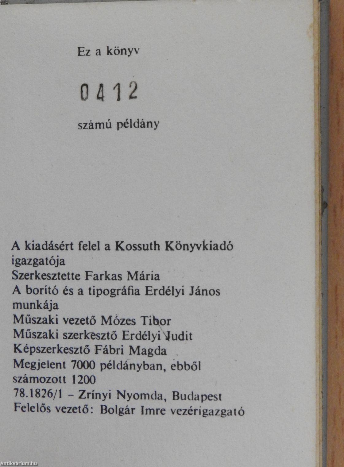 | Megjegyzés: | Számozott kiadás. Számozás színe: Fekete Kiadott példányszám: Megjelent 7000 példányban, ebből számozott 1200 példány. Könyvtervező: Erdélyi János Nyomda: Zrínyi Nyomda, Budapest Fekete-fehér fotókkal illusztrálva. A bevezető orosz és angol nyelven is szerepel a könyvben. A könyv pontos mérete: 40 x 56 mm. |