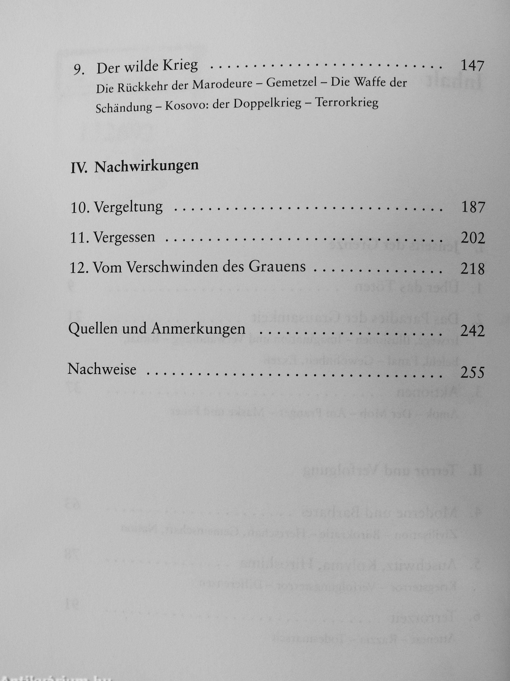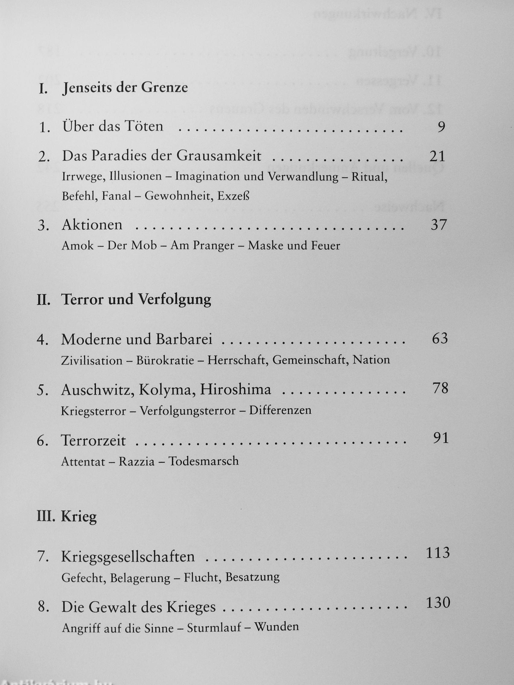Der letzte Teil des Buches ist der Zeit nach dem Schrecken gewidmet: der Vergeltung durch Rache oder Strafe, dem Vergessen und Erinnern, den moralischen Gefühlen der Schuld und Scham, schließlich dem Verschwinden der Spuren. Das Buch argumentiert jenseits der eingefahrenen Diskurse über die moderne Zivilisation und ihre vermeintlichen Errungenschaften. Es verbindet historische, psychologische, soziologische und philosophische Perspektiven zu einer neuen Anthropologie der Macht und Gewalt, die von erheblicher politischer Bedeutung Ist.