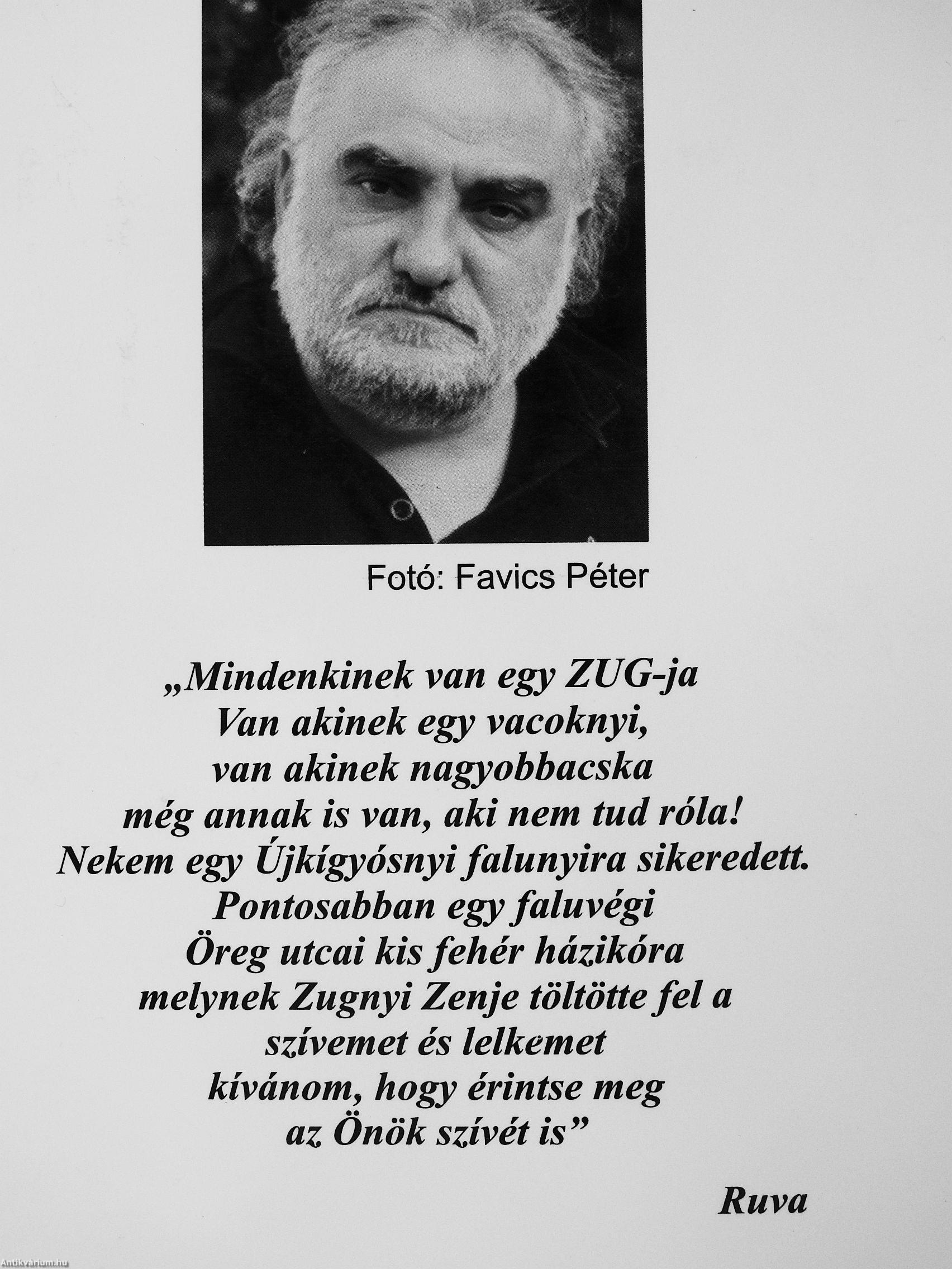 Nekem egy Újkígyósnyi falunyira sikeredett. Pontosabban egy faluvégi Öreg utcai kis fehér házikóra melynek Zugnyi Zenje töltötte fel a szivemet és lelkemet kívánom, hogy érintse meg az Önök szívét is"