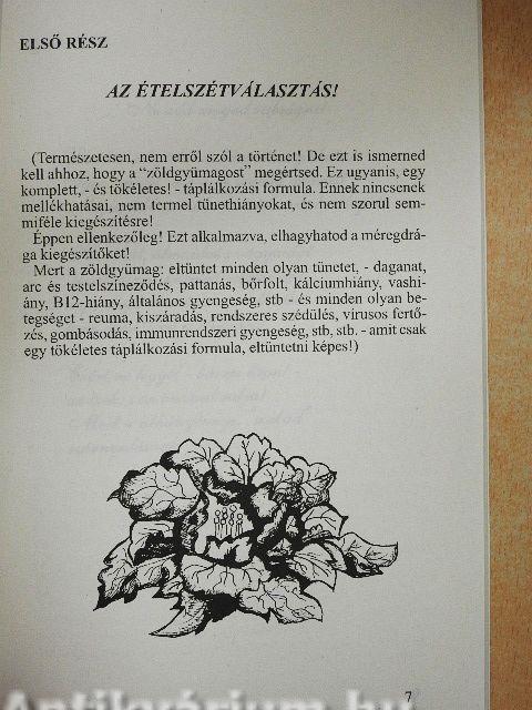 A zöldgyümag egy rendkívül hatékony táplálkozási formula. melynek kiemelkedő szerepe lehet a legkülönbözőbb betegségek megelőzésében, illetve a meglévők leküzdésében! Fiatalít, ránctalanít, erősítés energiát ad. (Mindezt pedig: kiegészítő ételek és italok nélkül teszi!) Nem csodaszer, és így nem is alkalmas mindenre: mégis mindenkinek javallott! Életkorból függetlenül fogyasztható! (Annyi, de annyiféle betegség fenyegeti a mai embert, hogy kár lenne kihagyni!) A zöldgyümag még a rettegett AIDS-szel szemben is győzhet! Ne késlekedj! Semmiféle kockázattal nem jár! Mert miről is van szó? Arról, hogy valamennyi reggel, egy "újraszületés" Ebből fakadóan, mindennap a teljes vitamin, ásványi anyag és nyomelem készletre van szükséged! (Plusz fehérje és a többiek!) Ám az eddig kipróbált étkezési formák egyike sem tudta ezt lehetővé tenni! Mert hiába eszel bármit is a cél érdekében, ha némely alkotóelem, - meg az ételkészítés módja! - lerontja a hatásfokot! Nagy dilemma ennek a kivédése! Hát ezt a problémát oldja meg a zöldgyümagos életforma! Képzeld el: az eddigi gyenge helyett, maximális hatásfok: ugyanannyi pénzért! Ezért ajánlom bátran mindenkinek, de különösen az AIDS-eseknek, és a minden más gyógyíthatatlan! - betegnek! Szóval, rajta próbáld ki te is! (Ha másért nem, hát azért, hogy egy kicsit fiatalodj!) G.Gy.