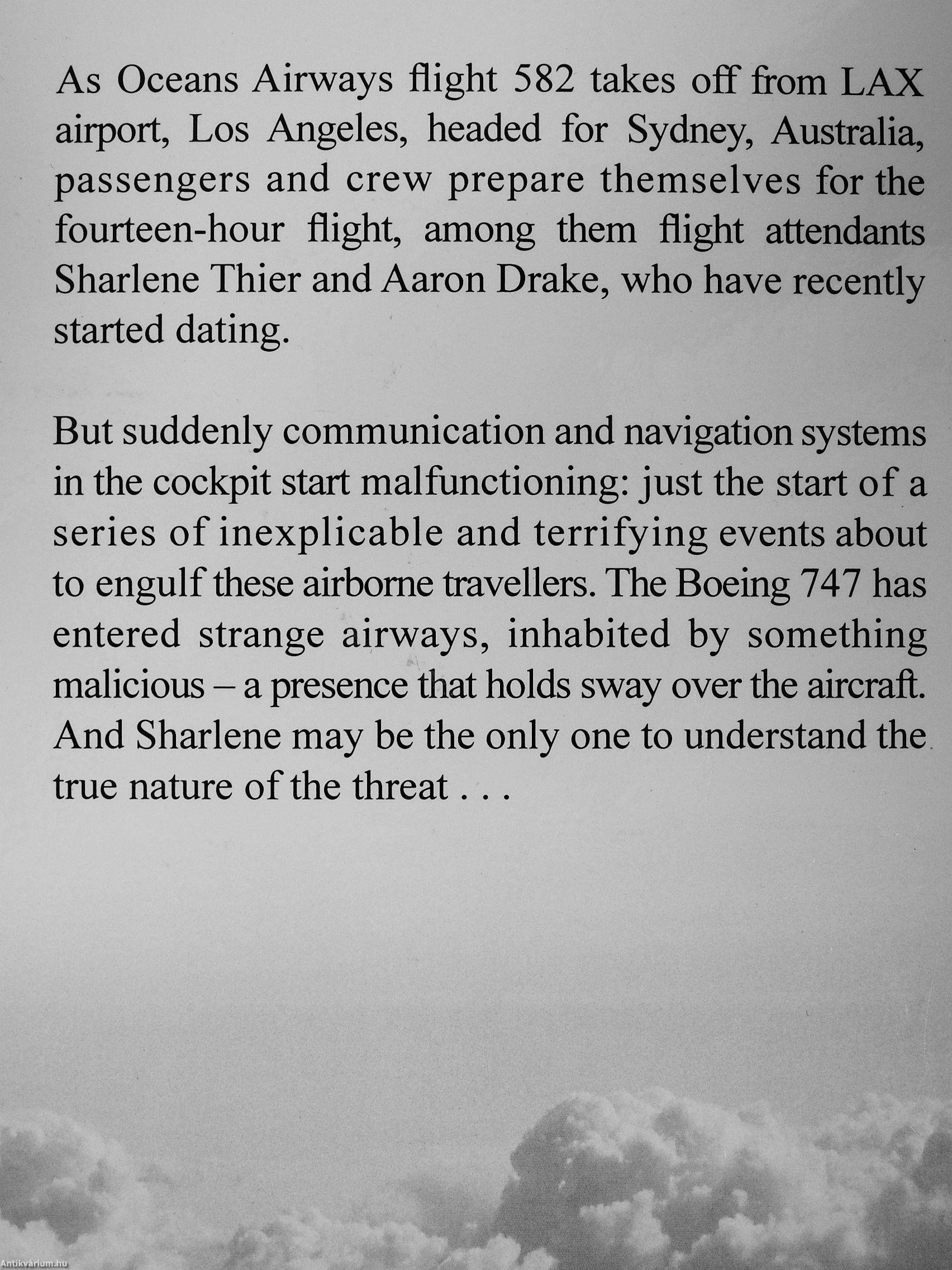 But suddenly communication and navigation systems in the cockpit start malfunctioning: just the start of a series of inexplicable and terrifying events about to engulf these airborne travellers. The Boeing 747 has entered strange airways, inhabited by something malicious - a presence that holds sway over the aircraft. And Sharlene may be the only one to understand the true nature of the threat. . .