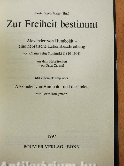 Alexander von Humboldt war eine der faszinierendsten Persönlichkeiten des 19. Jahrhunderts. Seine Reisen durch Europa, Amerika und Asien haben ihn weltberühmt gemacht. In einer 140 Jahre alten, jetzt erstmals ins Deutsche übersetzten hebräischen Lebensbeschreibung zeichnet der Berliner Mathematiker Chaim Selig Slonimski die Stationen Humboldts, seine Taten und Entdeckungen nach und ehrt damit zugleich sein lebenslanges kompromißloses Eintreten für die Freiheit und die Rechte der Juden.